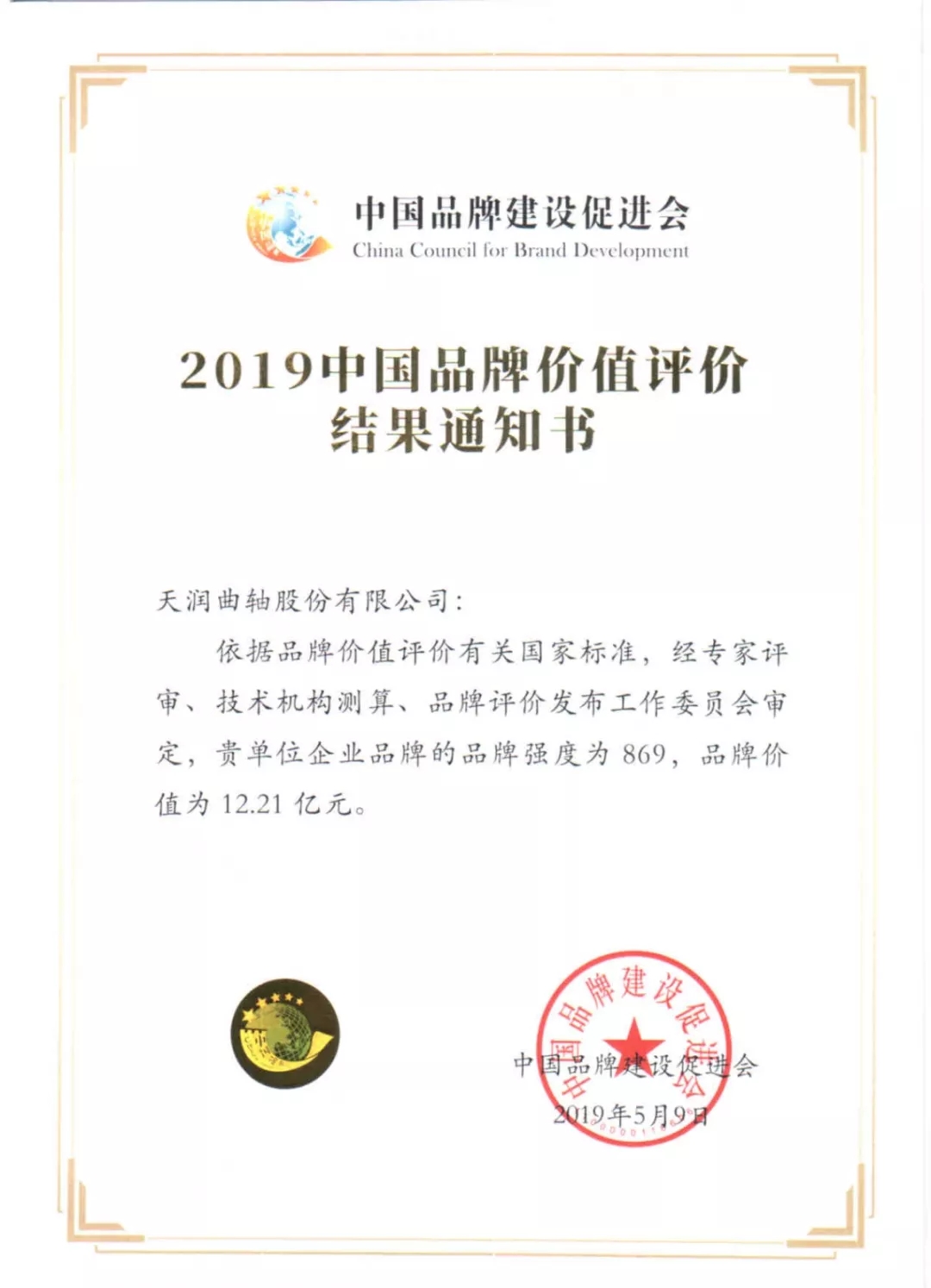 7ÔÂ25ÈÕ£¬ÖйúÆ·ÅÆ¼ÛÖµÆÀ¼ÛЧ¹û֪ͨÊéÐû²¼£¬ÎÒ¹«Ë¾ÆóÒµÆ·ÅÆµÄÆ·ÅÆÇ¿¶ÈΪ869£¬Æ·ÅƼÛÖµ12.21ÒÚÔª£¬ÈÙµÇ²ÎÆÀÆû³µ¼°Åä¼þÐÐÒµÆóÒµµÚ14λ¡£